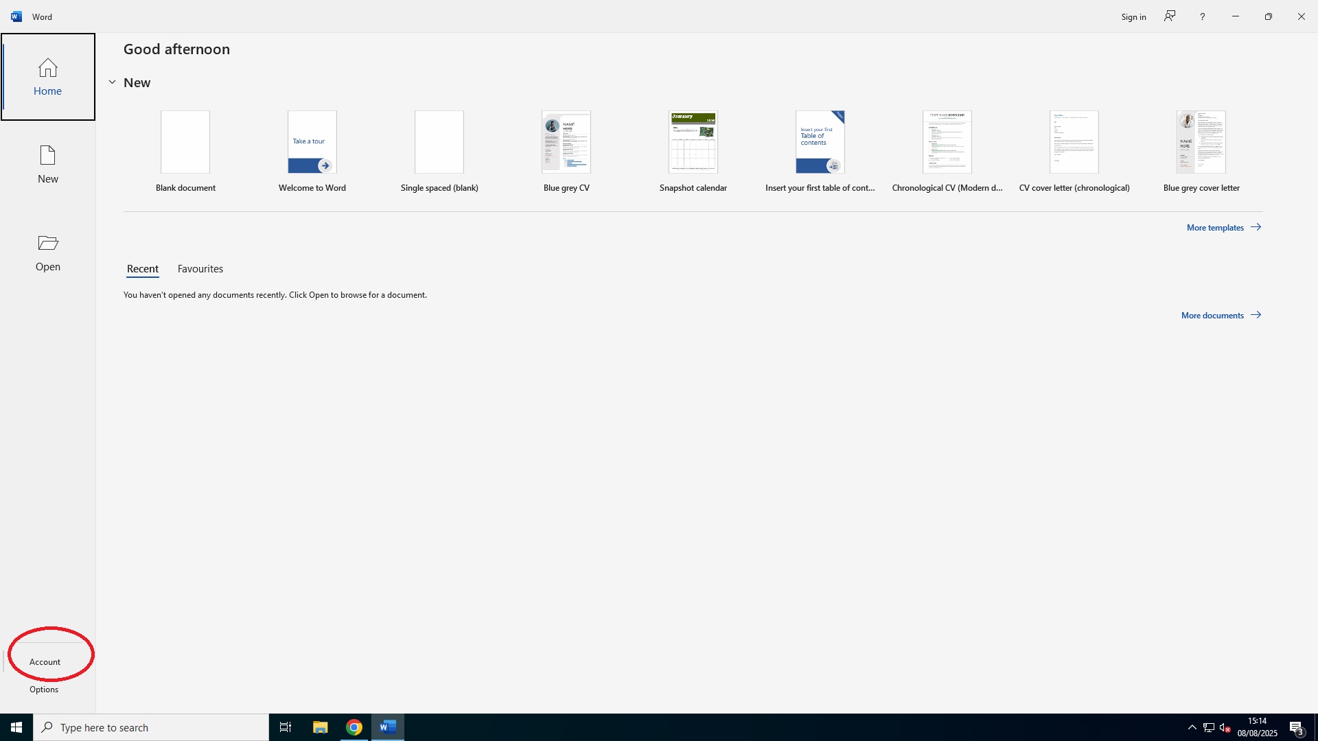 - Open Word (or Excel/PowerPoint/Outlook).